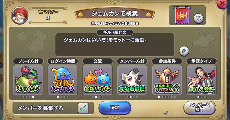 Dqr ギルド ジェムカンで検索 大会 ジェムファンライバルズ 秋さん Note