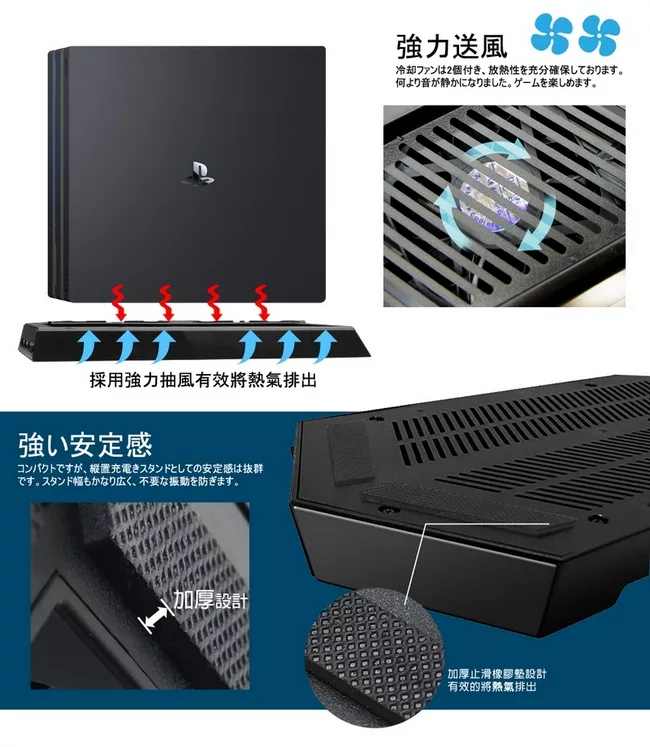 博客來 Ps4 Pro主機專用直立架含雙手把坐充及散熱風扇黑 Kjhps4pro 03