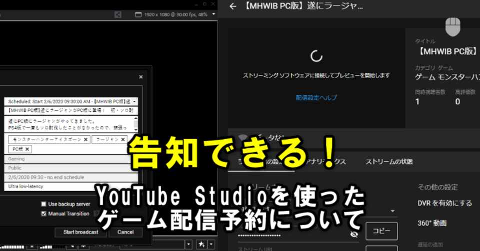 告知が出来るゲーム配信 Youtube Studioを使ったゲーム配信予約について Gan Note